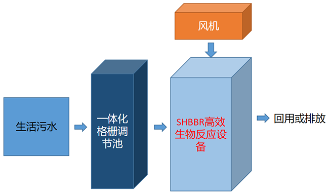 水处理站主要工艺:化粪池出水+格栅+调节池+SHBBR高效生物菌种反应设备+出水
