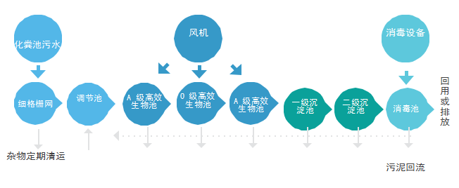 特点:采用仿生填料,不需要MBR膜,出水标准达《 城镇污水处理厂污染物排放标准》GB 18918----2002 中的一级 A 标准